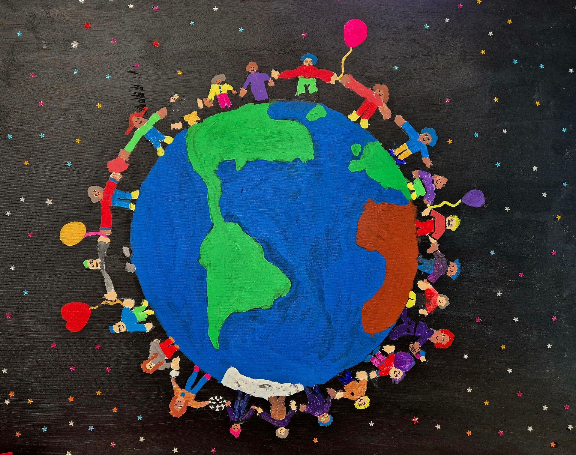 In der Projektwoche 2025 hat sich der 4. Jahrgang künstlerisch mit dem Thema Schule ohne Rassisamus - Schule mit Courage auseinandergesetzt. Dabei haben sie in Kleingruppen vier Schultage mit Acylfarben auf großformatigen Leinwänden gemalt. Ihre Leitideen haben die Kinder in unterschiedlichen Motiven, Farben und Bildkompositionen ausgedrückt. Es wurde viel gelacht, diskutiert, gesprochen und gepinselt. Am Ende sind wundervolle Kunstwerke entstanden, die in Kürze in Form einer Dauerausstellung im Schulgebäude ausgestellt werden. Jahrgang 4 mit Herr Jendrosch und Frau Richter