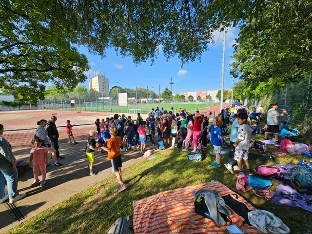 Am 11.06.25 war nun endlich unser Sport- und Spielfest. Dieses Mal hatten wir sehr angenehmes Wetter. Es war sonnig und warm. Am verschiedenen Stationen konnten die Schülerinnen und Schüler mit der ganzen Klasse Dosenwerfen,, Eierlauf, Sackhüpfen, Rundenlauf und Staffellauf machen. Es hat riesigen Spaß gemacht und alle Klassen haben teilgenommen. Danke an Frau Stöckel und Herrn Fydrich für die hervorragende Organisation. Danke an die Volunteers der UBS, die mit so viel Freude unterstützt haben. Danke an den Förderverein und die UBS dafür, dass die Sportlerinnen und Sportler mit gesunden Snacks versorgt wurden.