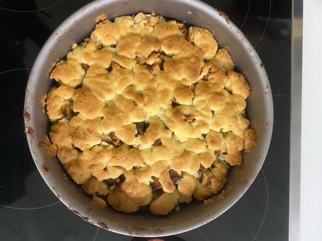Die Äpfel vom Schulobst kann man in jeder Form genießen. Heute haben wir in drei Gruppen Applecrumble zubereitet. Wir waren in der Schulküche, haben Äpfel geschält und geschnitten und Streusel geformt. Selbstverständlich haben wir vor dem Backen Zimt darüber gestreut.