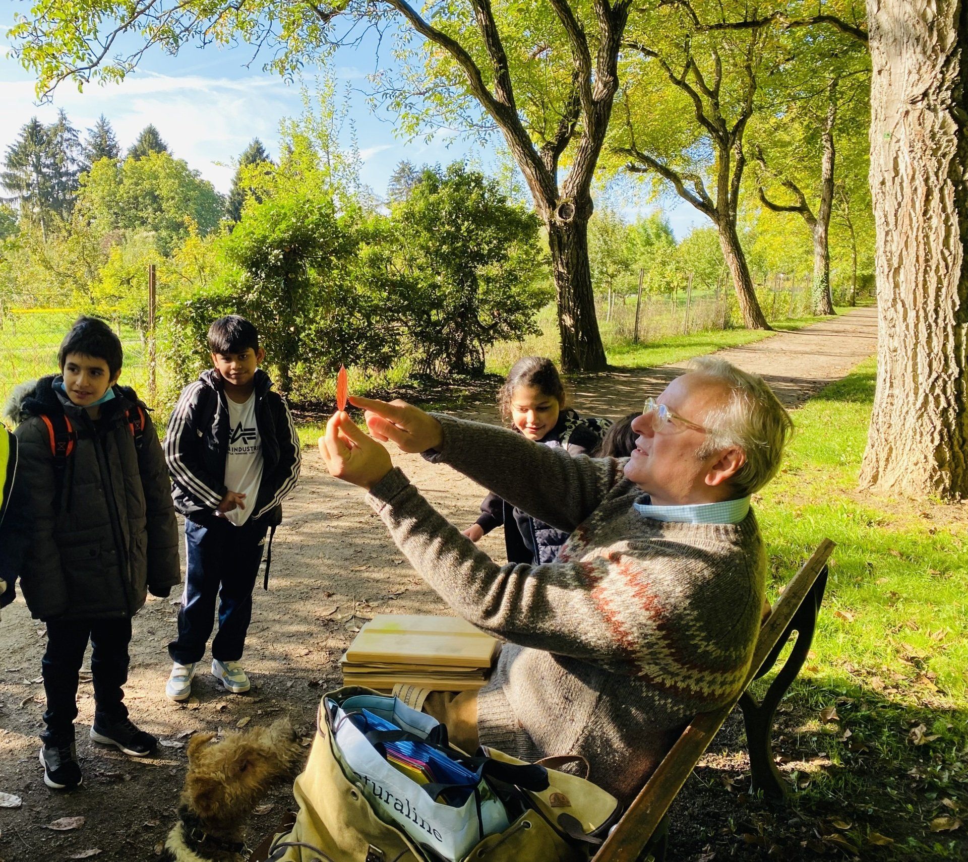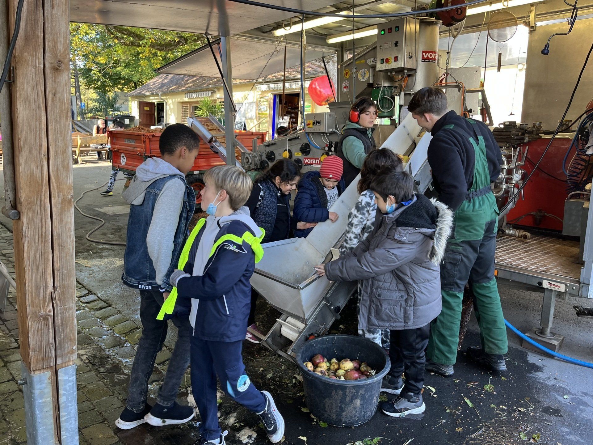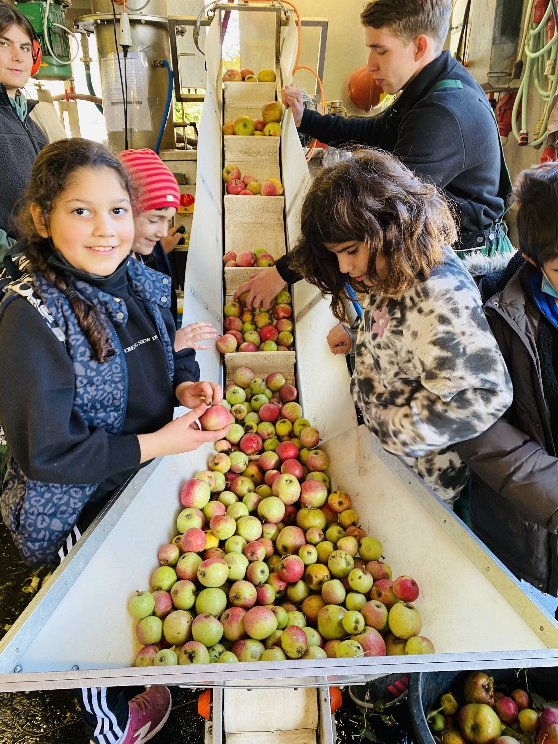 Am Freitag, den 7.Oktober unternahm die Klasse 4d gemeinsam mit Clemens, dem Leiter der Schreibwerkstatt einen Ausflug zum Lohrberg, um dort den Herbst mit allen Sinnen zu erleben. Wir sammelten bunte Blätter, die wir anschließend pressten. Wir lernten, wie sich Eichhörnchen auf den Winter vorbereiten und sammelten Walnüsse. Besonders toll war die mobile Kelterei. Hier konnten wir unseren eigenen Apfelsaft keltern.