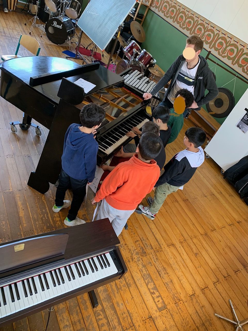 Am Mittwoch, den 03.Mai haben wir in der 5. Stunde den Musikspielplatz besucht. Da waren sehr nette und liebe Student:innen der Musikhochschule in Frankfurt. Sie haben uns erklärt, was wir alles ausprobieren können. Es hat viel Spaß gemacht, weil es viele Instrumente gab. Manche haben Gießkannen-Trompete gespielt. Die Trompete mit der Gießkanne hörte sich an wie ein Elefant. Dort haben wir auch Klavier gespielt und bei klassischer Musik getanzt. Wir konnten mit Musik experimentieren. Zusammen mit den Student:innen haben wir unsere eigene Musik gemacht.