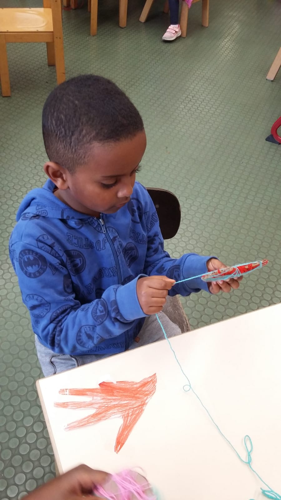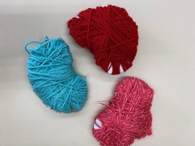 Ein Pappherz wurde mit Wolle in vielen bunten Farben umwickelt. Die Kinder hatten viel Spaß dabei und haben sich über ihr weiches Herz sehr gefreut.