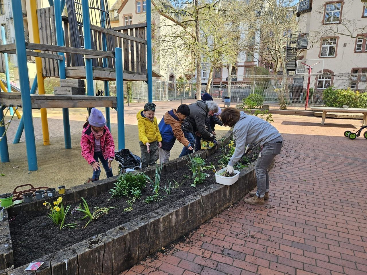 Mit der Lieferung der Blumenerde haben sich die Kinder der VK 1, 2 und 3 an die Gartenarbeit gemacht. Zuerst haben alle die Erde auf das Schulbeet verteilt und anschließend unsere Frühblüher eingesetzt. Zusätzlich haben wir noch Zwiebeln gesteckt und Radieschen gesät. Am Schluß wurde noch kräftig gegossen. Nun hoffen wir, dass wir unsere 1. Erfolge nach den Osterferien sehen können. FROHE OSTERN🐰
