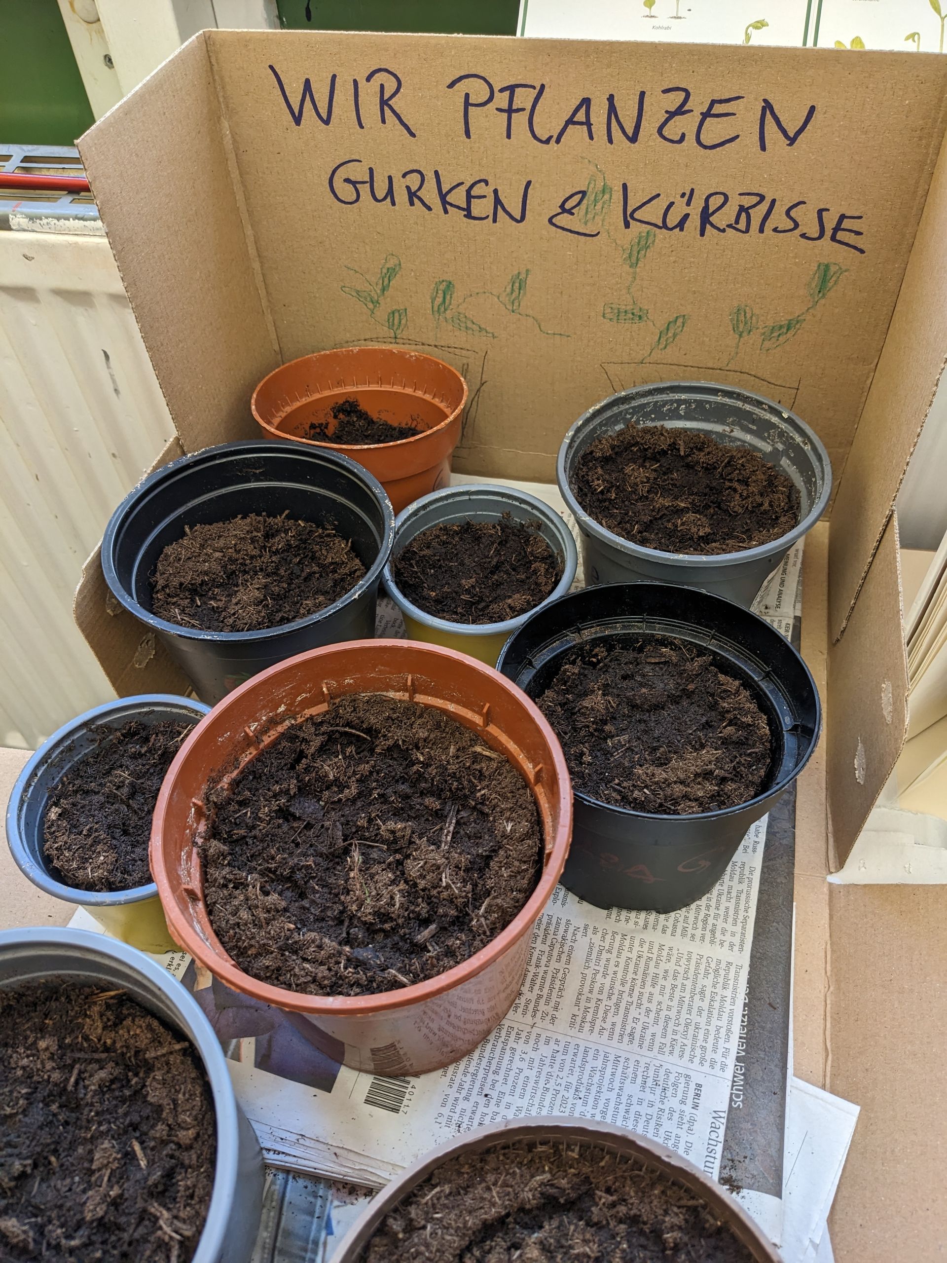 Unsere Pflänzchen wollen wir später gemeinsam in unser Schulbeet pflanzen.