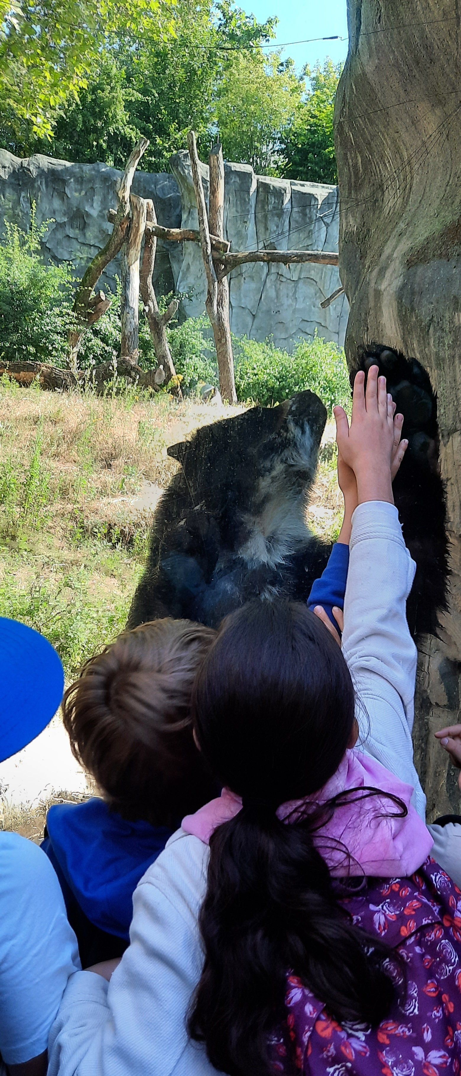 Am Dienstag, den 7.6.22 waren wir im Zoo. Alle haben ganz viele Tiere gesehen. Wir haben einen großen Brillenbär gesehen. Der Bär hat uns allen Highfive gegeben. Wir haben einen Axolotl gesehen und ein Okapi gesehen. Die ganze Klasse war im Streichelzoo und hat die Ziegen gestreichelt. Es hat dort ganz viel Spaß gemacht.